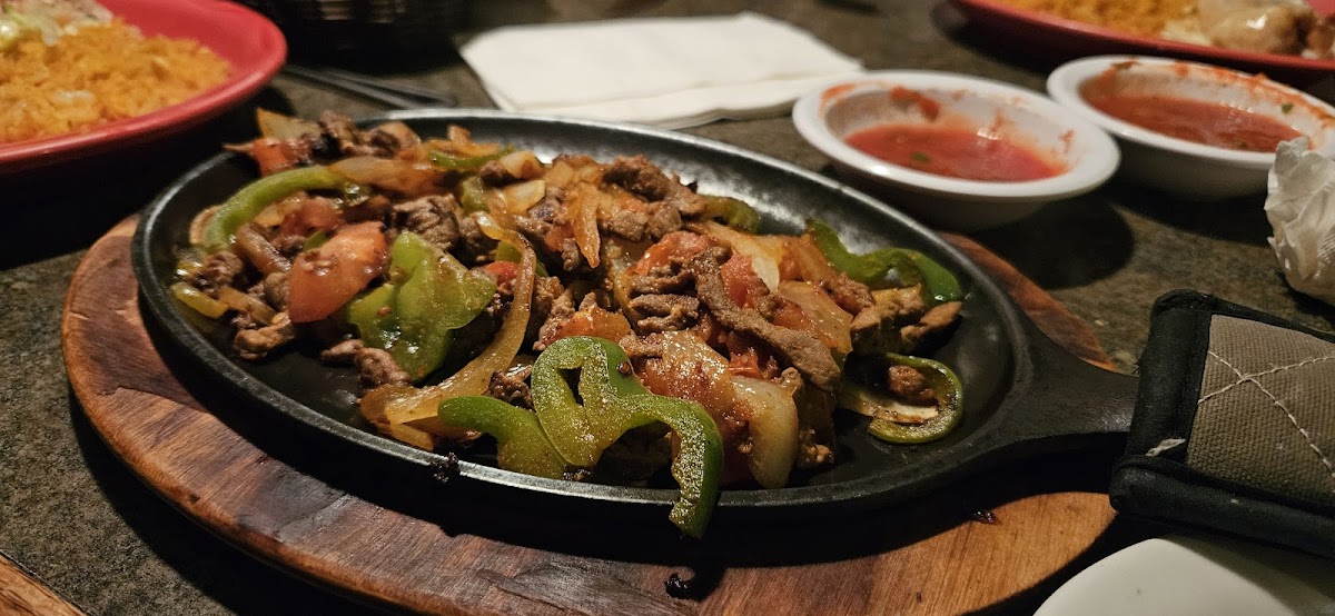Loved this place! 1st time customer here. Hubby & I walked the half mile from our comfortable hotel(Hampton Inn) to eat there. Upon entering we were greeted by a friendly hostess and music that matched the restaurant. I really appreciate that. We were promptly seated at a nearby booth and chips & salsa soon followed. They have their standard salsa but they also have a spicier salsa. All very good. Reasonably priced. We ordered 2 large margies, 1 molcajete, 2 chile rellenos, 4 tacos & 1 tamale. Total was $80!!! We're impressed and will go back when we're in the area again. P.s. the video of the bubbling molcajete was after 10+ minutes of bubbling.